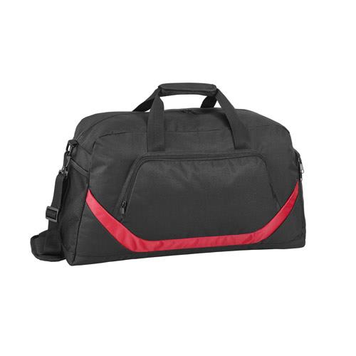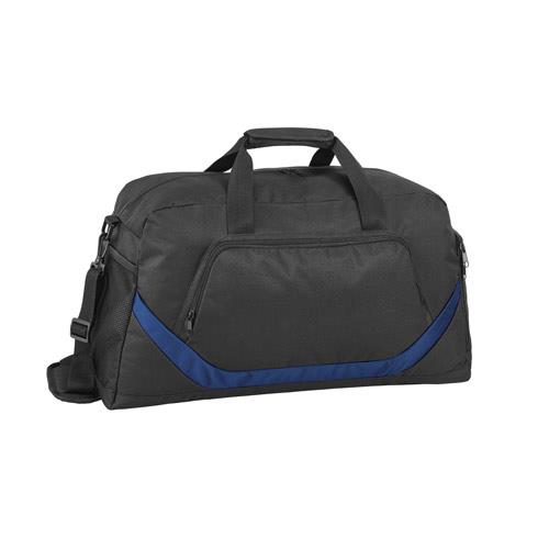 Torba sportowa. 300D i 1680D. Wyściełane wnętrze i spód z półsztywną wkładką. 1 przednia kieszeń na zamek błyskawiczny oraz 2 boczne kieszenie: 1 siatkowa kieszeń i druga kieszeń na buty na zamek błyskawiczny. Regulowany pasek na ramię z amortyzowanym wzmocnieniem. Pojemność do 35 L. 550 x 300 x 250 mm