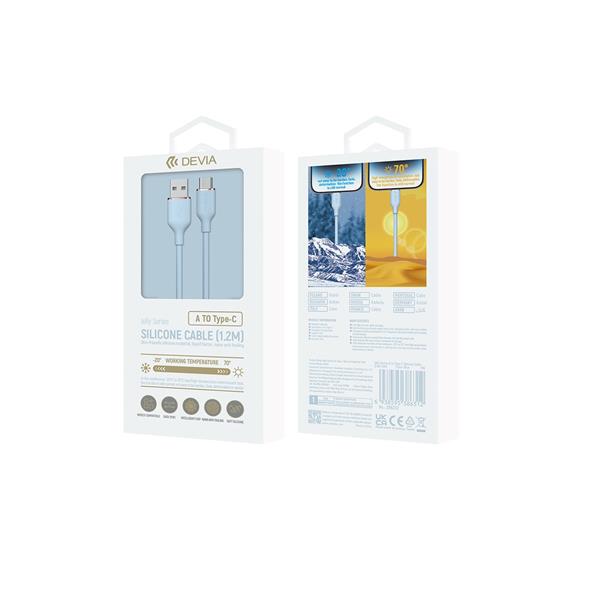 Devia Jelly to kabel wyposażony w złącze USB-C. Kabel został zaprojektowany tak aby zapewnić jak największy komfort dla codziennego użytkowania. Wykonany z elastycznego silikonu aby zapewnić jak najdłuższy czas użytkowania.