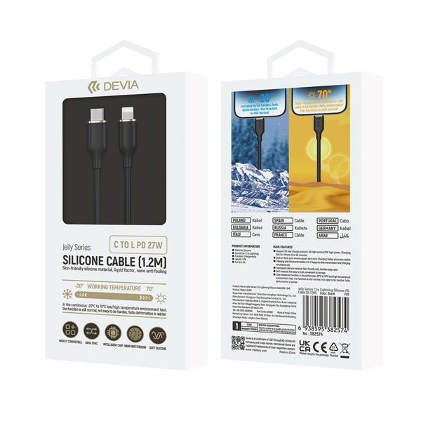 Devia Jelly to kabel wyposażony w złącza USB-C do Lightning. Kabel został zaprojektowany tak aby zapewnić jak największy komfort dla codziennego użytkowania. Wykonany z elastycznego silikonu aby zapewnić jak najdłuższy czas użytkowania. Kompatybilność