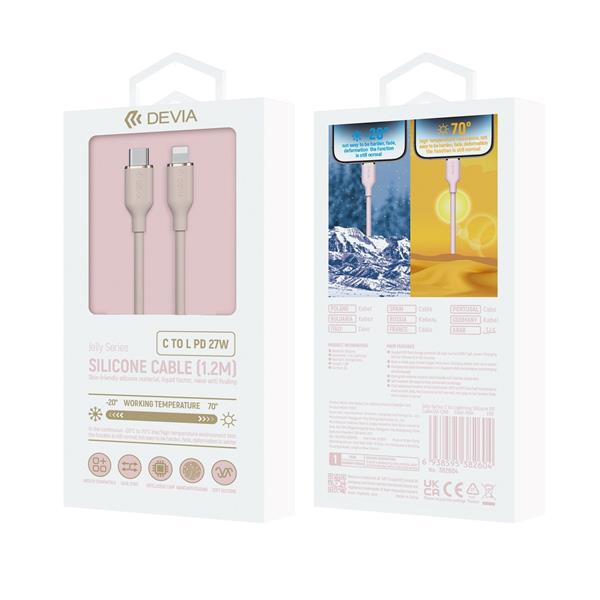 Devia Jelly to kabel wyposażony w złącza USB-C do Lightning. Kabel został zaprojektowany tak aby zapewnić jak największy komfort dla codziennego użytkowania. Wykonany z elastycznego silikonu aby zapewnić jak najdłuższy czas użytkowania. Kompatybilność