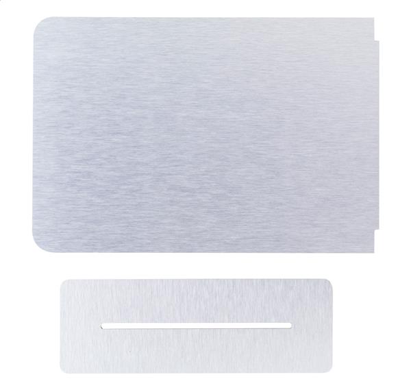 Description: Display ze szczotkowanego aluminium z full kolorowym nadrukiem. Cena zawiera nadruk UV LED po jednej stronie. Min. ilość: 50szt. Primary Color: srebrny Shape: prostokąt Material 1: Kompozyt aluminiowy Rozmiar: 145×184×50 mm