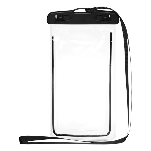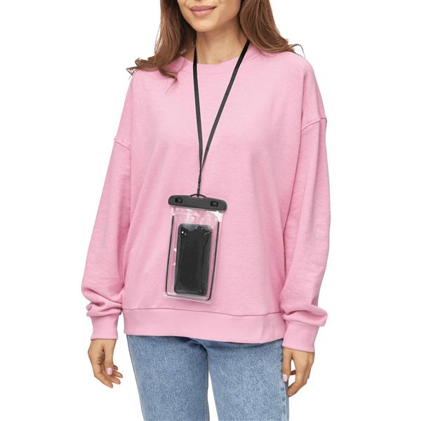 Torebka na telefon DIVER odporna na zachlapanie, z zamknięciem strunowym, z czarnym paskiem (ok. 43 cm). Na obwodzie paski świecące w ciemnościach. Idealna do przechowywania telefonu, portfela i innych cennych przedmiotów na plaży lub nad jeziorem.