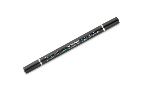 Długopis TWINO 2 w 1 łączy w jednym korpusie klasyczny długopis i wieczny ołówek, tworząc praktyczne narzędzie do codziennego użytku. Z jednej strony znajduje się długopis z zatyczką i wkładem o grubości pisania 1,0 mm, z drugiej – ołówek wieczny, który nie wymaga ostrzenia. Korpus wykonany jest z tworzywa o satynowym wykończeniu i ozdobiony srebrnymi pierścieniami podkreślającymi jego dopracowany wygląd. TWINO jest lekki, poręczny i wygodny, idealny do biura, szkoły lub jako funkcjonalny gadżet reklamowy.