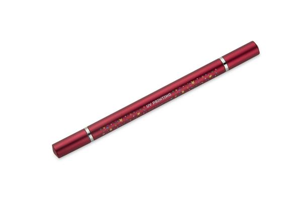 Długopis TWINO 2 w 1 łączy w jednym korpusie klasyczny długopis i wieczny ołówek, tworząc praktyczne narzędzie do codziennego użytku. Z jednej strony znajduje się długopis z zatyczką i wkładem o grubości pisania 1,0 mm, z drugiej – ołówek wieczny, który nie wymaga ostrzenia. Korpus wykonany jest z tworzywa o satynowym wykończeniu i ozdobiony srebrnymi pierścieniami podkreślającymi jego dopracowany wygląd. TWINO jest lekki, poręczny i wygodny, idealny do biura, szkoły lub jako funkcjonalny gadżet reklamowy.