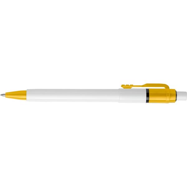 Długopis ABS Stilolinea Baron, biała końcówka i kolorowy klips, wkład w niebieskim kolorze, zawiera tusz German Dokumental Ink, produkt wykonany z ABS i plastiku