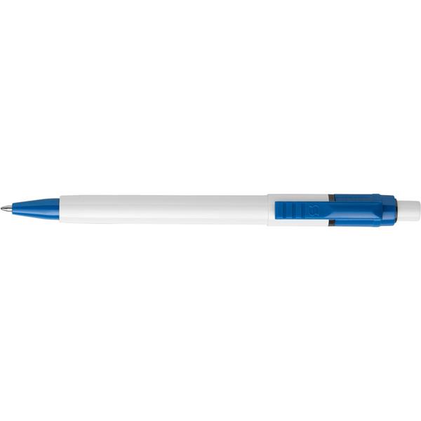 Długopis ABS Stilolinea Baron, biała końcówka i kolorowy klips, wkład w niebieskim kolorze, zawiera tusz German Dokumental Ink, produkt wykonany z ABS i plastiku