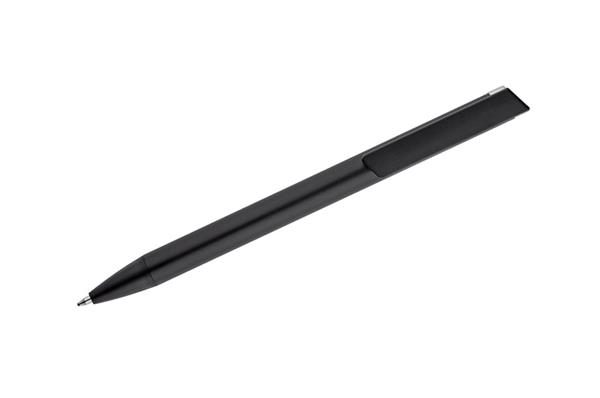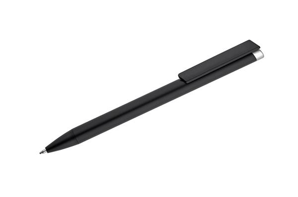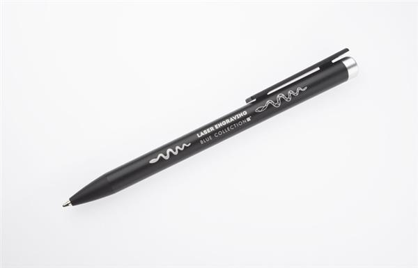 ALI to wyjątkowy długopis umożliwiający wykonanie znakowania w kolorze zbliżonym do końcówki długopisu oraz całkowicie zaskakującego grawerowania w dwóch kolorach – w kolorze zbliżonym do końcówki długopisu oraz białym (kolor aluminium). Czarny metalowy korpus oraz czarne wykończenia stanowią idealne tło dla kolorowego grawerowania. Długopis automatyczny. Wkład typu X20 o grubości 1.0 mm w kolorze niebieskim.