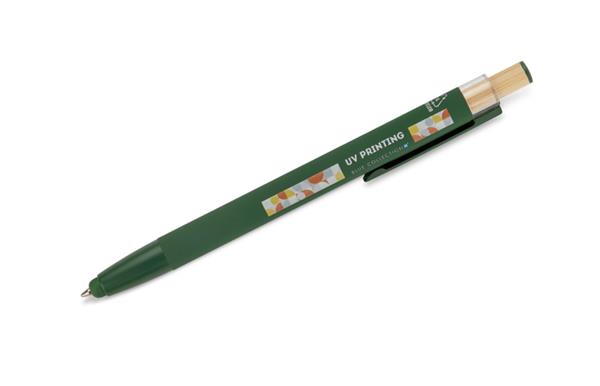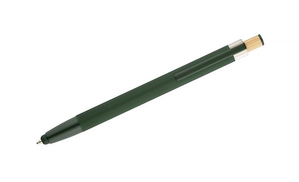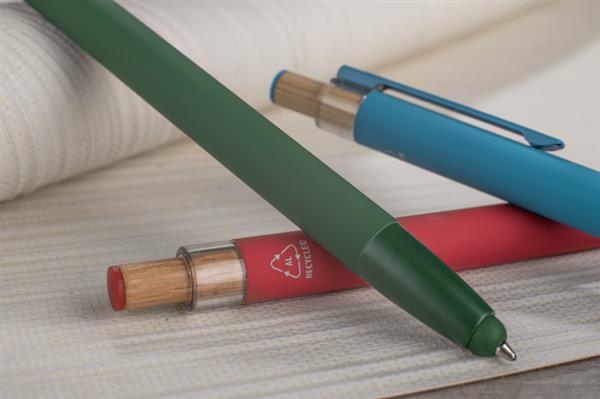 Długopis ALPEN to połączenie nowoczesnego designu i wygody pisania. Wykonany z recyklingowanego aluminium z miękkim w dotyku, gumowanym wykończeniem typu soft touch, zapewnia komfortowe użytkowanie każdego dnia. Wyposażony jest w funkcję touch pena do obsługi ekranów dotykowych oraz metalowy klip, który ułatwia przypięcie do notesu lub kieszeni. Charakterystyczny guzik z bambusa dodaje całości naturalnego akcentu, a kolorowe detale podkreślają jego nowoczesny styl. Wkład typu G2 o grubości linii 1,0 mm gwarantuje płynne pisanie i wysoką trwałość.