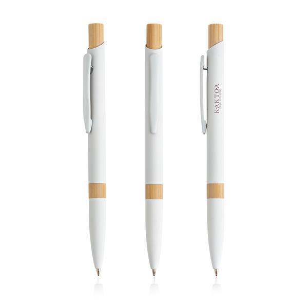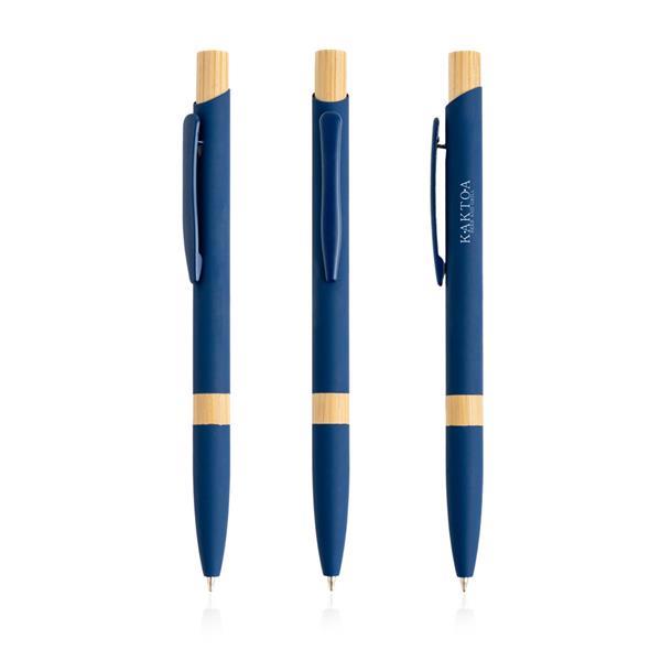 Długopis aluminiowy z bambusowymi detalami. Ten długopis piszący na niebiesko ma nowoczesny design, łączący metal z naturalnym bambusem, tworząc niezapomniany prezent.