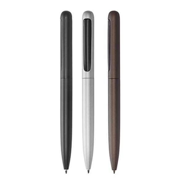 Długopis wykonany z aluminium, z chowającym się klipsem i mechanizmem obrotowym. Posiada wkład piszący na niebiesko. Rozmiar: 14,5 x 1 cm L1 (grawer laserowy): 5 x 0,6 Kolor: Ciemno szary