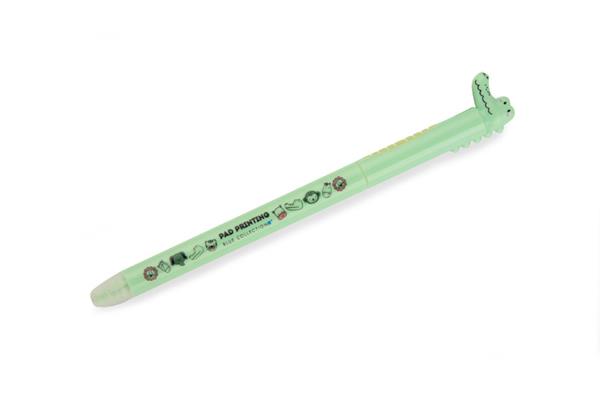 Długopis ANIMAL z motywem krokodyla wyróżnia się lekko humorystycznym stylem i przyjemnym w dotyku, lakierowanym wykończeniem. Korpus w odcieniu zieleni oraz nasadka w kształcie krokodyla nadają mu wyjątkowy charakter. Mechanizm przekręcany typu twist umożliwia łatwe wysuwanie żelowego wkładu (0,5 mm), który gwarantuje płynne i równomierne pisanie. To praktyczny i zabawny gadżet, który wnosi odrobinę luzu do codziennych obowiązków.