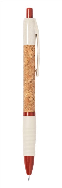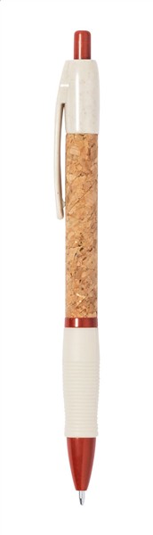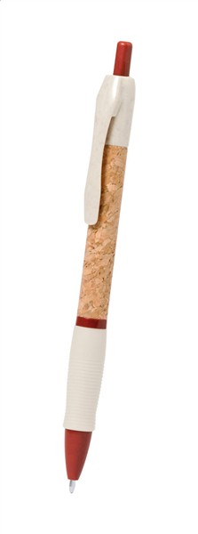 Ekologiczny plastikowy długopis ze słomy pszenicznej z korpusem pokrytym naturalnym korkiem i gumowym uchwytem. Z niebieskim wkładem.