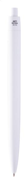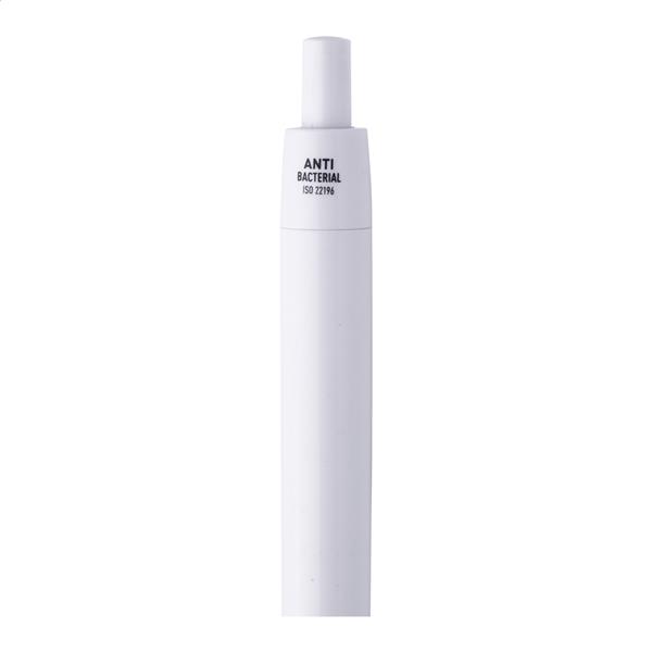 Plastikowy długopis z antybakteryjnym korpusem. Zawiera dodatek nanosrebra zapobiegający rozwojowi bakterii na powierzchni długopisu. Z mechanizmem pchającym i niebieskim wkładem. Zgodny z ISO 22196: 2011.