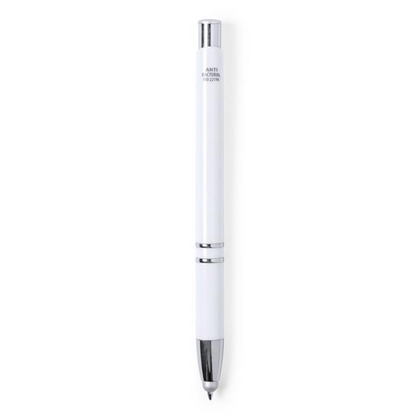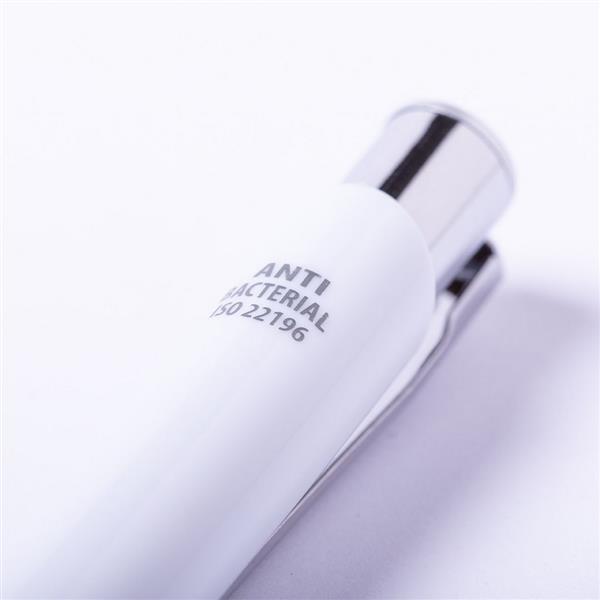 Antybakteryjny długopis, touch pen, srebrne elementy, spełnia wymagania normy ISO 22196