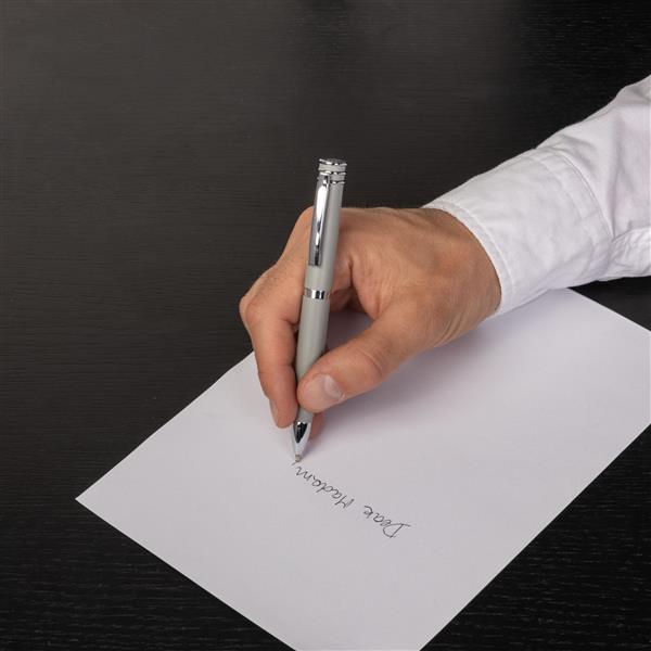 Pióro `Austin` jest zbudowane na jednej z najbardziej ikonicznych sylwetek Cerruti: pierścieniowej górze. W tej nowej wersji, bawimy się matowym korpusem ozdobionym pięknymi platerowanymi metalowymi wykończeniami. Wersja szara i chromowana sprawia wrażenie wyrazistej i nowoczesnej.