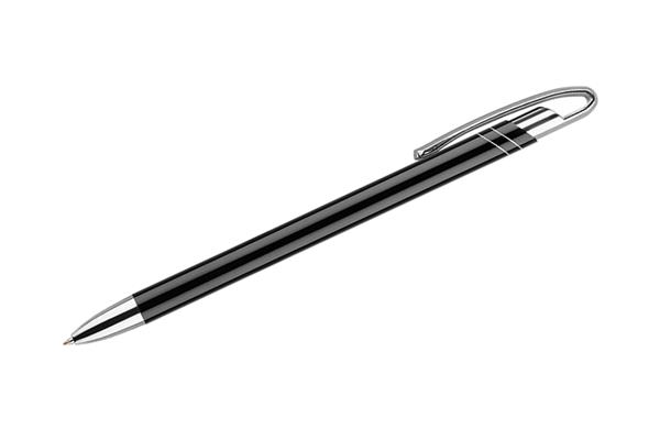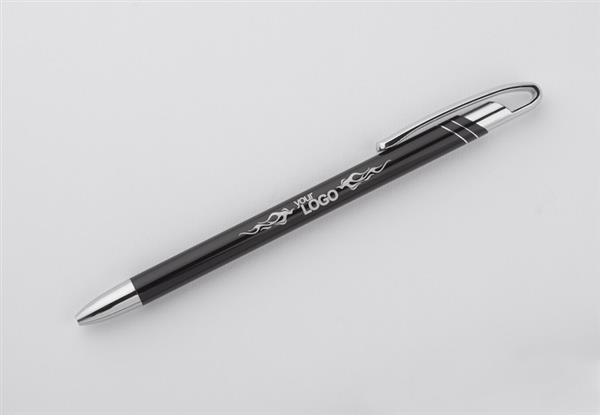 Cienki i zgrabny metalowy długopis w kolorze o metalicznym wykończeniu. Klip i końcówki w kolorze srebrnym chromowanym. AVALO wyróżnia się wśród podobnych długopisów oryginalnym projektem klipu. Korpus ozdobiony został dwoma skośnymi paskami w kolorze srebrnym. Wkład o grubości 0,7 mm w kolorze niebieskim.