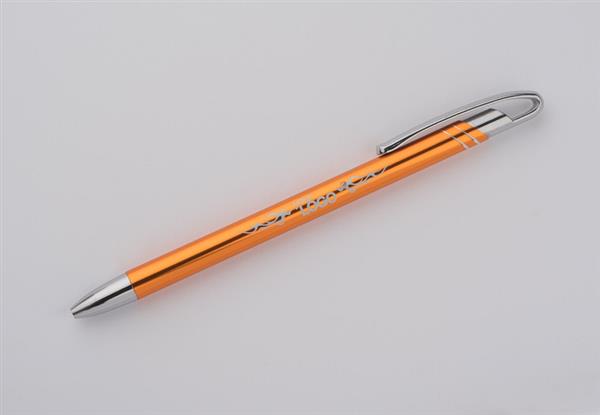 Cienki i zgrabny metalowy długopis w kolorze o metalicznym wykończeniu. Klip i końcówki w kolorze srebrnym chromowanym. AVALO wyróżnia się wśród podobnych długopisów oryginalnym projektem klipu. Korpus ozdobiony został dwoma skośnymi paskami w kolorze srebrnym. Wkład o grubości 0,7 mm w kolorze niebieskim.