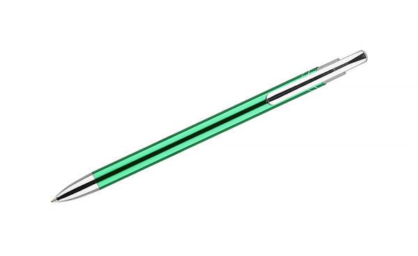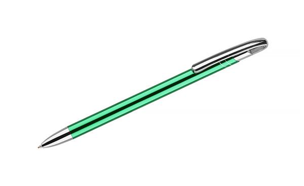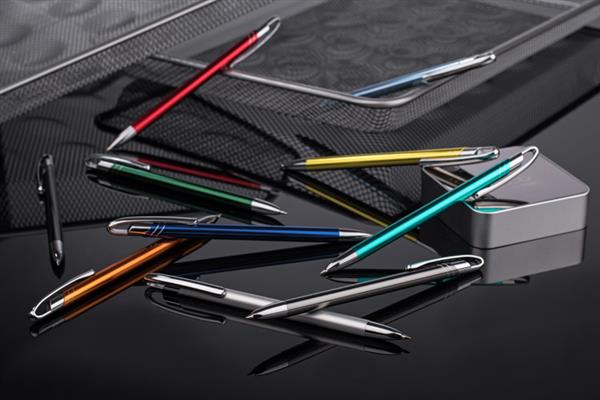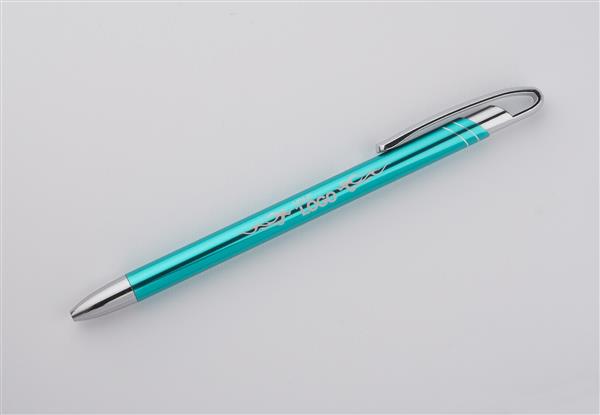 Cienki i zgrabny metalowy długopis w kolorze o metalicznym wykończeniu. Klip i końcówki w kolorze srebrnym chromowanym. AVALO wyróżnia się wśród podobnych długopisów oryginalnym projektem klipu. Korpus ozdobiony został dwoma skośnymi paskami w kolorze srebrnym. Wkład o grubości 0,7 mm w kolorze niebieskim.