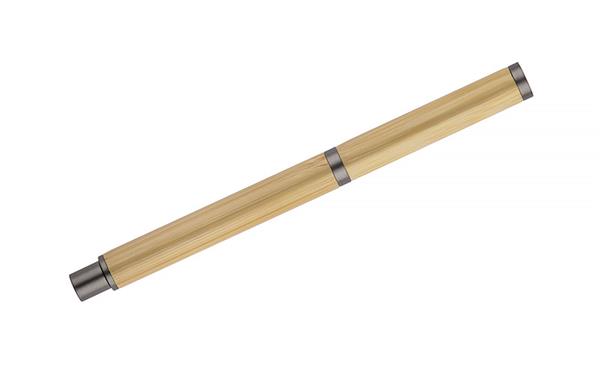 Długopis bambusowy DENI z zatyczką i niebieskim wkładem to doskonały wybór dla osób ceniących ekologiczne rozwiązania. Obudowa długopisu wykonana jest z naturalnego bambusa, co nadaje mu przyjazny dla środowiska wygląd. Kontrastujące elementy, takie jak klips i końcówki, są wykonane z wytrzymałego tworzywa. Połączenie naturalnych materiałów z nowoczesnym wzornictwem sprawia, że długopis z pewnością przyciągnie uwagę zarówno klientów, jak i partnerów biznesowych.