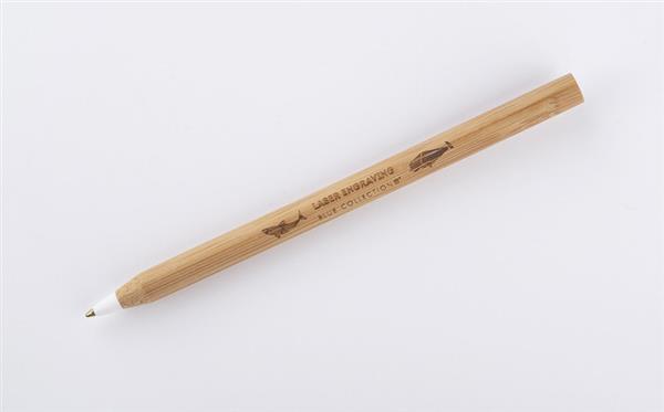 LASS to prosty długopis, którego korpus został wykonany w 100% z naturalnego bambusa. Długopis bez zatyczki. Wkład zabezpieczony przed wysychaniem za pomocą wosku. Wkład typu X20 w kolorze niebieskim.