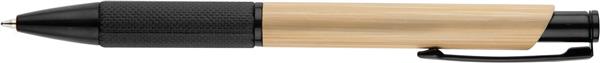 Długopis bambusowy NATU łączy prostą formę z detalami o naturalnym charakterze. Korpus wykonany z bambusa uzupełniono czarnymi elementami mechanizmu oraz uchwytem z tłoczonego papieru, który poprawia komfort trzymania. Długopis wyposażony jest we wkład typu Parker, co zapewnia płynne i wygodne pisanie. Subtelny, a zarazem funkcjonalny gadżet piśmienniczy o charakterze inspirowanym naturą.