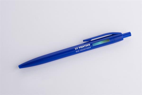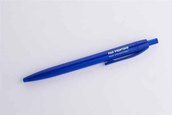 Plastikowy długopis BASIC z niebieskim wkładem. Logo nadrukujemy na korpusie.