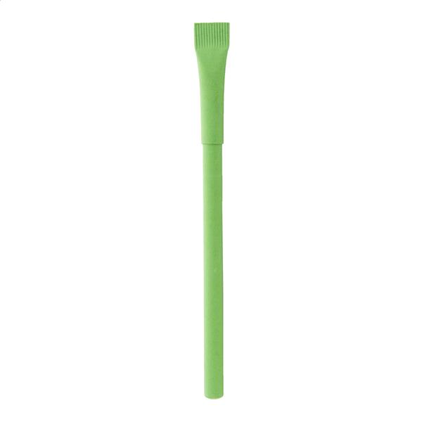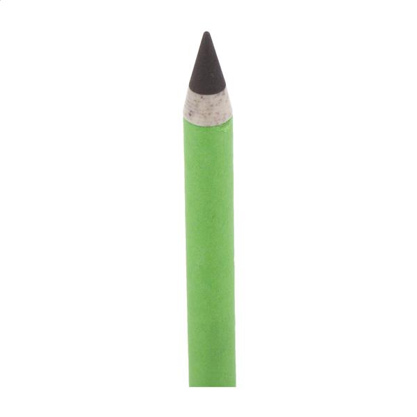 Długowieczny długopis bezatramentowy z papieru makulaturowego z dopasowaną kolorystycznie skuwką. Z plastikową końcówką ze słomy pszenicznej i stopu metalu, która utlenia papier. Ten długopis pisze podobnie do ołówka, a także można go wymazywać.