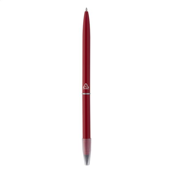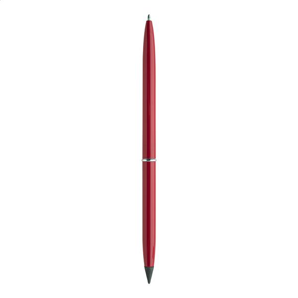 Przekręcany długopis 2w1 z aluminium z recyklingu z ołówkiem wiecznym. Z niebieskim wkładem i końcówką ze stopu metalu, która utlenia papier. Ten długopis pisze podobnie do ołówka, a także jest usuwalny.
