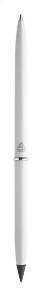 Przekręcany długopis 2w1 z aluminium z recyklingu z ołówkiem wiecznym. Z niebieskim wkładem i końcówką ze stopu metalu, która utlenia papier. Ten długopis pisze podobnie do ołówka, a także jest usuwalny.