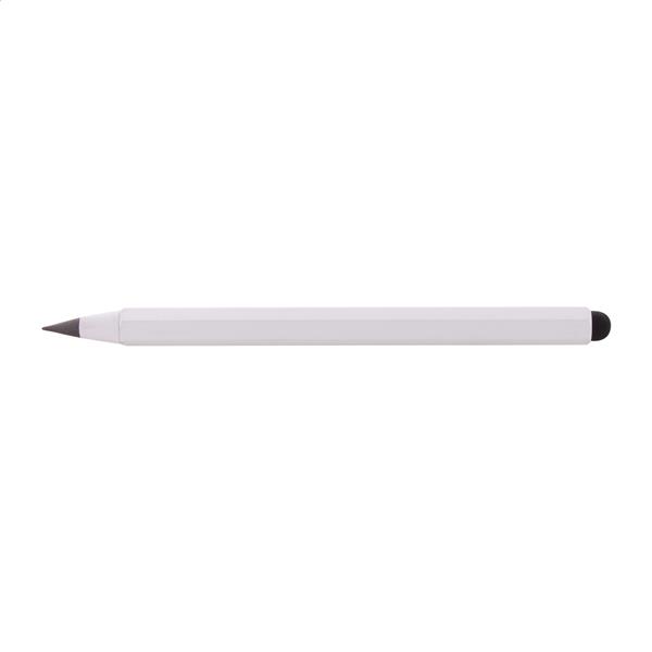 Bezatramentowy długopis z aluminium pochodzącego z recyklingu z końcówką do ekranów dotykowych i końcówką piszącą ze stopu metalu, który utlenia papier. Z sześciokątnym korpusem zawierającym linijki 11 cm i 4 cale. Ten długopis pisze podobnie do ołówka, a także można go wymazywać.