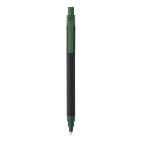 Długopis z papieru z recyklingu, z czarnym korpusem i elementami z recyklingowanego ABS. Z niebieskim wkładem.