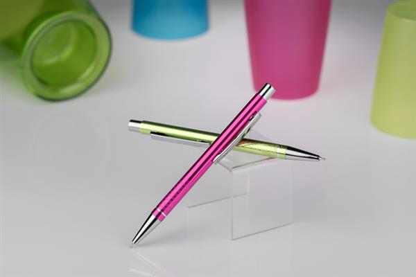Długopis BONITO to klasyczny elegancki długopis metalowy o metalicznych kolorach z chromowanymi wykończeniami. Wykonany z aluminium. Korpus ozdobiony srebrnym ringiem na dole oraz paskami o delikatnie chropowatej strukturze. Nowy typ wkładu z tuszem półżelowym o grubości pisania 0,7 mm. Wkład w kolorze niebieskim.