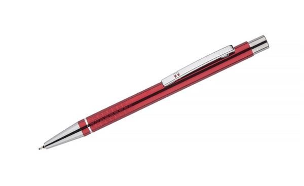 Długopis BONITO to klasyczny elegancki długopis metalowy o metalicznych kolorach z chromowanymi wykończeniami. Wykonany z aluminium. Korpus ozdobiony srebrnym ringiem na dole oraz paskami o delikatnie chropowatej strukturze. Nowy typ wkładu z tuszem półżelowym o grubości pisania 0,7 mm. Wkład w kolorze niebieskim.