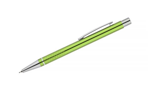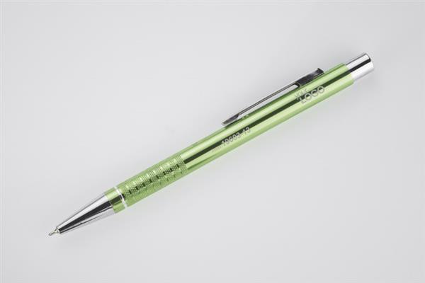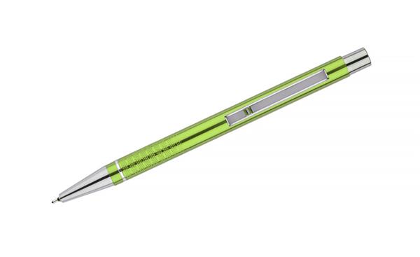 Długopis BONITO to klasyczny elegancki długopis metalowy o metalicznych kolorach z chromowanymi wykończeniami. Wykonany z aluminium. Korpus ozdobiony srebrnym ringiem na dole oraz paskami o delikatnie chropowatej strukturze. Nowy typ wkładu z tuszem półżelowym o grubości pisania 0,7 mm. Wkład w kolorze niebieskim.