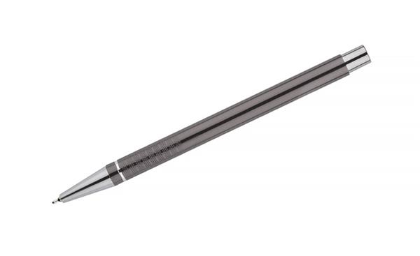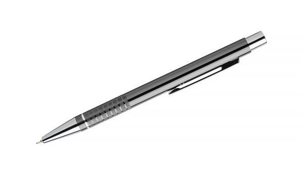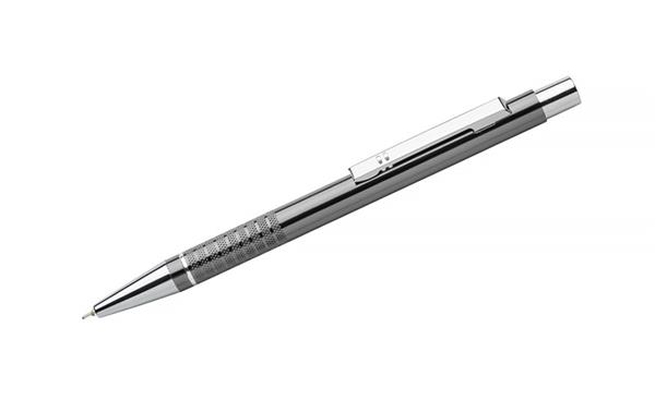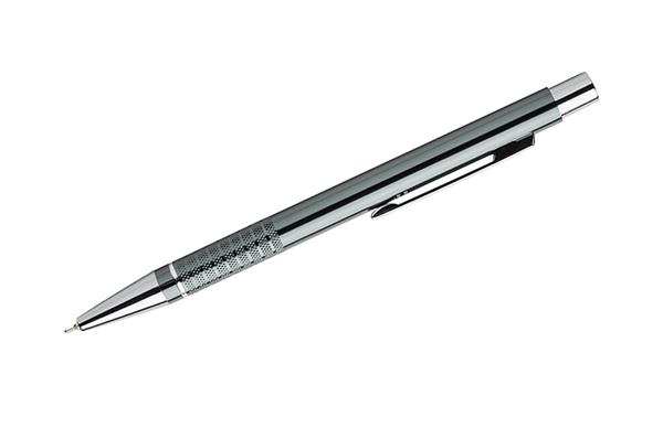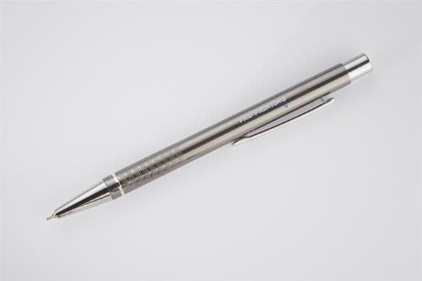 Długopis BONITO to klasyczny elegancki długopis metalowy o metalicznych kolorach z chromowanymi wykończeniami. Wykonany z aluminium. Korpus ozdobiony srebrnym ringiem na dole oraz paskami o delikatnie chropowatej strukturze. Nowy typ wkładu z tuszem półżelowym o grubości pisania 0,7 mm. Wkład w kolorze niebieskim.