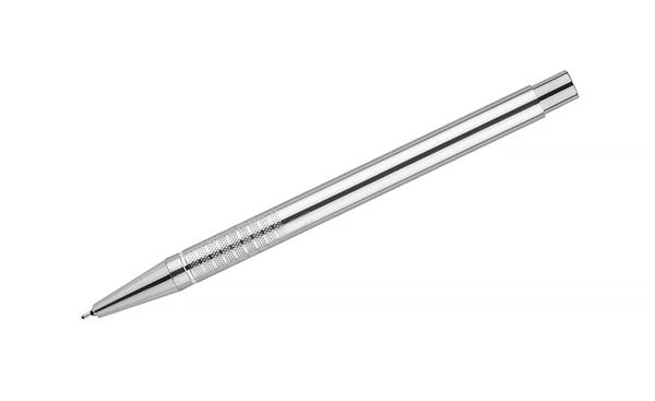 Długopis BONITO to elegancki metalowy długopis w metalicznych kolorach z chromowanymi wykończeniami. Wykonany z wysokiej jakości aluminium, korpus długopisu ozdobiony jest srebrnym ringiem oraz paskami o delikatnie chropowatej strukturze. Długopis wyposażony jest w wkład z tuszem półżelowym w kolorze czarnym o grubości 0,7 mm.