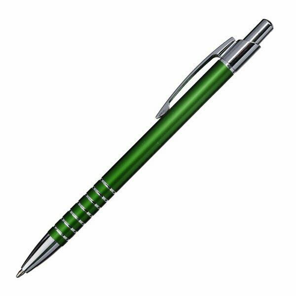 Aluminiowy długopis z metalową skuwką. Wyposażony w niebieski wkład. Wymiary: 140.0×9.0×9.0 Meteriał wykonania: aluminium Kolor podstawowy: zielony