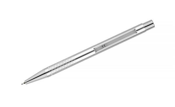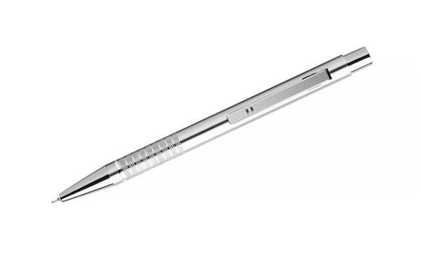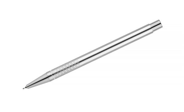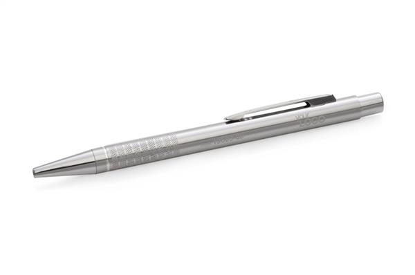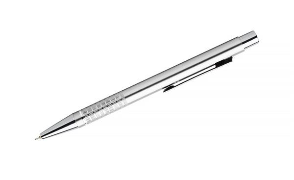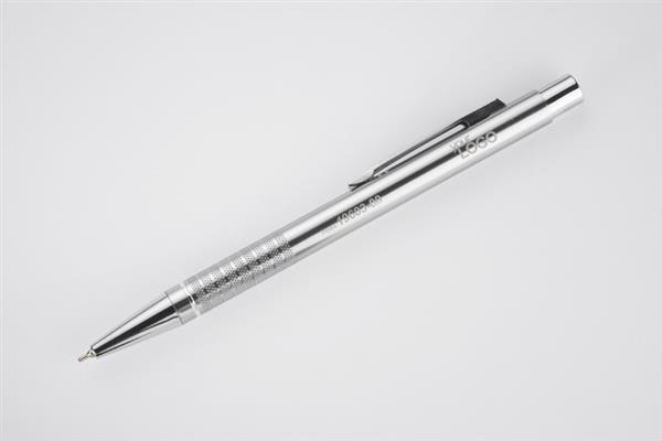Długopis BONITO to klasyczny elegancki długopis metalowy o metalicznych kolorach z chromowanymi wykończeniami. Wykonany z aluminium. Korpus ozdobiony srebrnym ringiem na dole oraz paskami o delikatnie chropowatej strukturze. Nowy typ wkładu z tuszem półżelowym o grubości pisania 0,7 mm. Wkład w kolorze niebieskim.