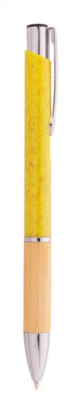 Ekologiczny plastikowy długopis ze słomy pszenicznej z bambusowym uchwytem i metalowymi elementami. Z niebieskim wkładem.