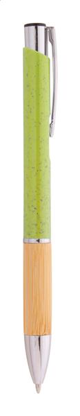 Ekologiczny plastikowy długopis ze słomy pszenicznej z bambusowym uchwytem i metalowymi elementami. Z niebieskim wkładem.