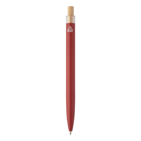 Aluminiowy długopis z recyklingu z bambusowym przyciskiem. Z niebieskim wkładem.