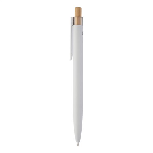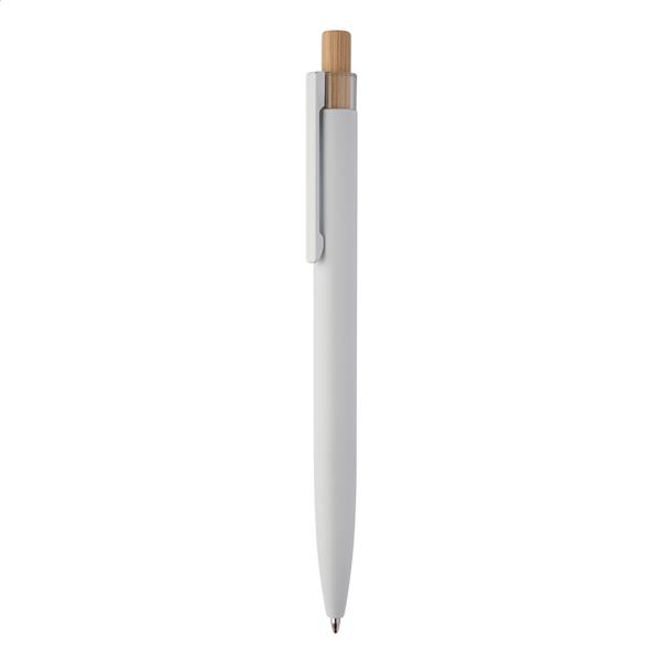 Aluminiowy długopis z recyklingu z bambusowym przyciskiem. Z niebieskim wkładem.