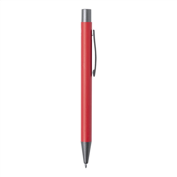 Długopis z aluminium pochodzącego z recyklingu z elementami w kolorze ciemnoszarej stali. Z niebieskim wkładem.