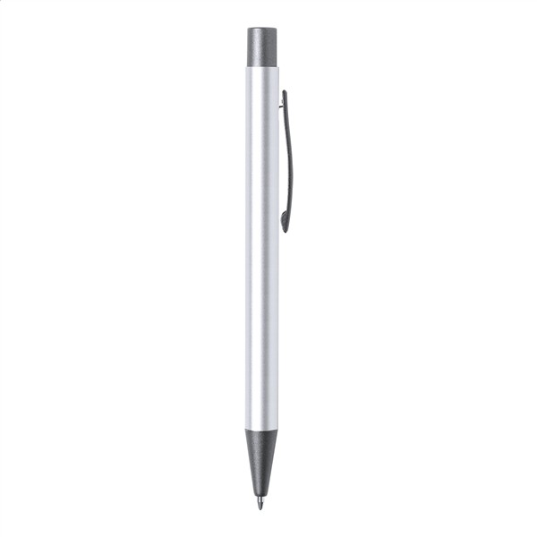 Długopis z aluminium pochodzącego z recyklingu z elementami w kolorze ciemnoszarej stali. Z niebieskim wkładem.