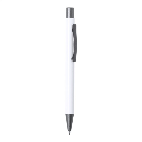 Długopis z aluminium pochodzącego z recyklingu z elementami w kolorze ciemnoszarej stali. Z niebieskim wkładem.
