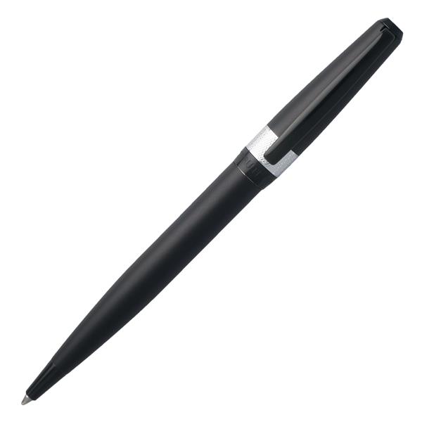 Ergonomiczny i nowoczesny długopis Canal charakteryzuje się czarnym lakierem i kontrastującym, chromowanym pierścieniem z wzorem typu guilloché.