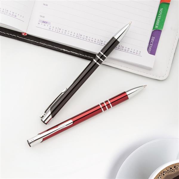 Aluminiowy długopis z niebieskim wkładem. Description: Aluminiowy długopis z niebieskim wkładem. Primary Color: czarny Rodzaj długopisy: Długopis Rodzaj mechanizmu: wciskany Material 1: Aluminium Rozmiar: o11×138 mm Rodzaj wkładu: Normalny wkład Rozmiar kulki we wkładzie: 1 mm Kolor wkładu: Niebieski