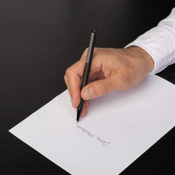 Przybory piśmienne Cloud charakteryzują się równowagą i funkcjonalnością, zachowując przy tym lekkość dzięki wyjątkowo smukłej sylwetce i minimalistycznej estetyce. Grawerowany wzór stanowi podniosły akcent i jest dostępny w trzech różnych odcieniach metalu. Ta czarna wersja jest zdecydowanie nowoczesna i minimalistyczna.