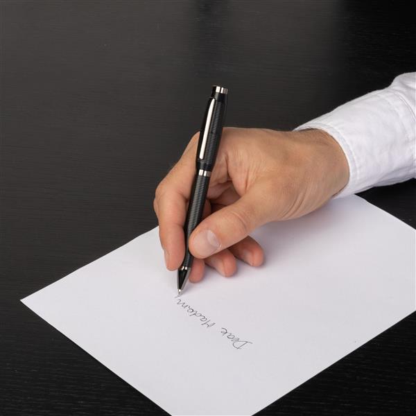 Futurystyczna estetyka, innowacyjne tekstury i współczesna paleta kolorów są podstawą naszych nowych przyborów piśmienniczych Cone. Mocna i wyważona rama pokazuje fachowe rzemiosło i dbałość o szczegóły charakterystyczne dla marki, zaprojektowane z myślą o trwałym stylu. Czarna matowa wersja z kwadratowym grawerunkiem jest wyrazem zaangażowania HUGO BOSS w innowacje w projektowaniu.