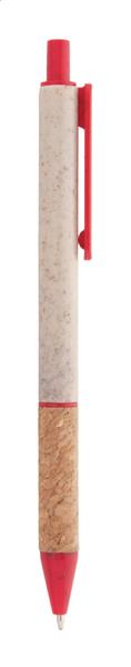 Ekologiczny plastikowy długopis ze słomy pszenicznej z uchwytem z naturalnego korka i kolorowymi elementami. Z niebieskim wkładem